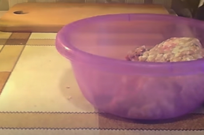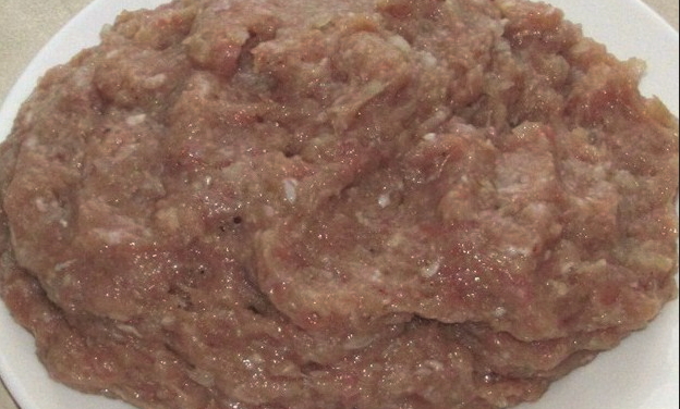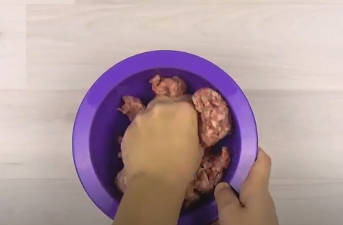 - Neem vers gehakt en voeg zout en peper toe aan de samenstelling, evenals een kippenei. Kneed het gehakt goed door, voeg dan een lepel griesmeel toe aan de samenstelling en meng de ingrediënten opnieuw. Gehakt vlees moet zeven tot tien minuten staan.