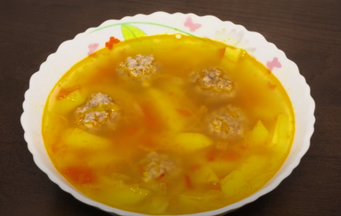 Een eenvoudig recept voor soep met gehaktballen en aardappelen