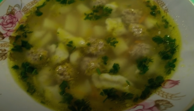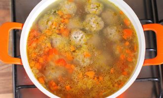 - Dompel de groenten in kokend water en leg daar de gehaktballen. Kook de soep totdat alle componenten volledig gaar zijn, dat wil zeggen ongeveer een half uur. Doe fijngehakte verse kruiden in de kant-en-klare aromatische soep met gehaktballen, of voeg vijf minuten voor het koken gedroogde kruiden toe.