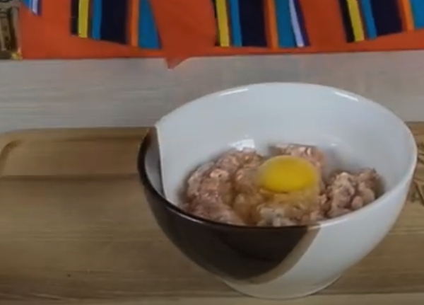 - Voeg zout en peper toe aan de resulterende gehakte kip, evenals een kippenei. Roer en zet opzij.