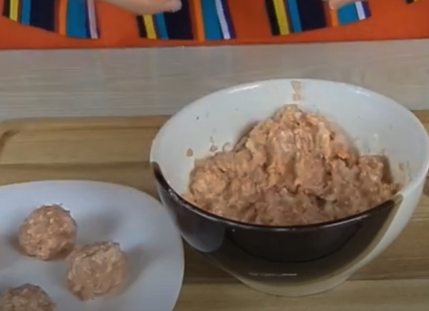 - Maak gehaktballen van gehakt. Voeg hiervoor zout en zwarte peper naar smaak toe aan het gehakt, klop er een ei in en voeg een eetlepel griesmeel toe - voor luchtigheid en sappigheid van de gehaktballen.