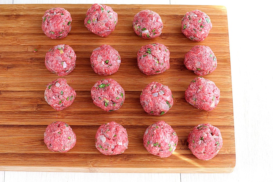 - Gebruik een theelepel of met je handen om het gehakt in kleine, dichte gehaktballen te vormen. Zet ze opzij.