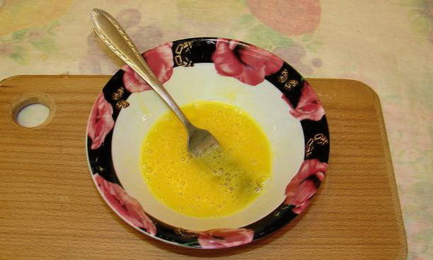 - Neem op dit moment een ei en klop het in een aparte container met een vork om schuim te vormen. Als de vermicelli gaar is, giet je het losgeklopte ei in één stroompje bij de soep en roer je snel om de eiervlokken te vormen. Voeg de kruiden toe, kook letterlijk nog een minuut en haal dan van het vuur.