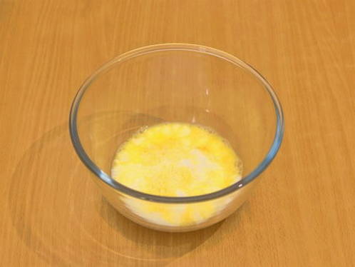 - Breek een ei in een geschikte kom en schud het met een garde of vork.