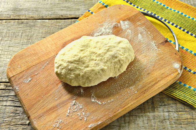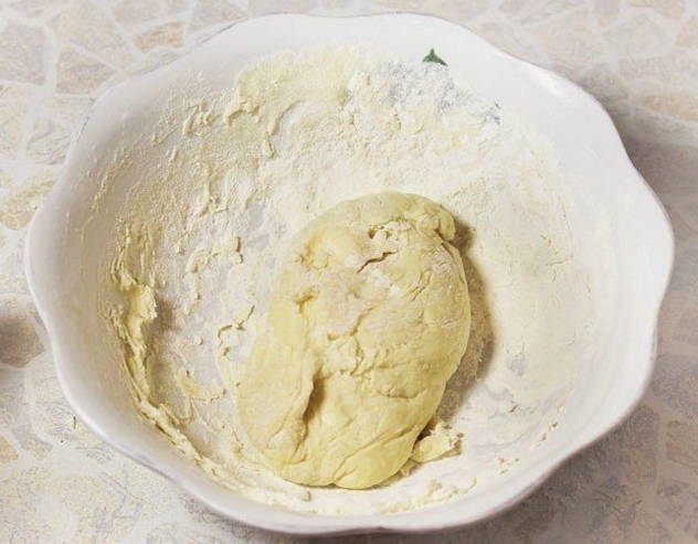 - We beginnen te kneden met een vork. Dan blijven we het met onze handen doen. Het afgewerkte deeg moet eruit zien als een knoedeldeeg.