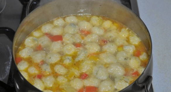 Er zit geen vlees in deze soep, maar zit boordevol verse groenten. Ei, boter, bloem, kruiden en kaas worden gebruikt om dumplings te bereiden, waardoor ze zacht en erg smakelijk zijn.