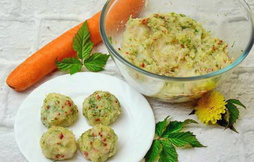 Deze soep is heel makkelijk te maken en erg verwarmend. Om te koken, heb je aardappelen, spek, ui en wortelen nodig om te braden. Om knoedels te maken, moet je melk mengen met ei en bloem.