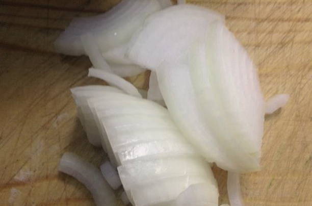 Pel de uien en snijd ze in halve ringen.