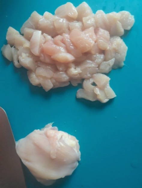 - Snijd tegelijkertijd de aardappelen in kleine blokjes en voeg ze toe aan de kippenbouillon.