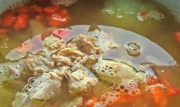 - Voordat u doorgaat met de bereiding van kippenbouillon, spoelt u het vlees en snijdt u het in blokjes. Dan doen we het in licht gezouten water en brengen aan de kook. Laat het vervolgens 20-30 minuten op laag vuur sudderen.