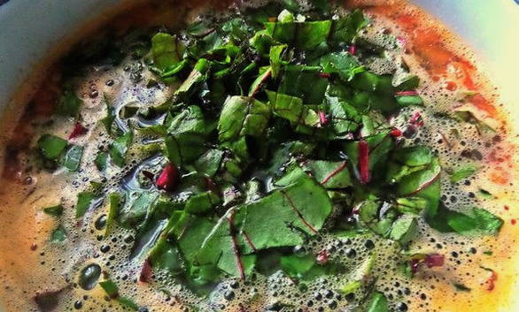 - Doe de eieren in de rode biet, breng aan de kook en breng op smaak met gehakte kruiden.