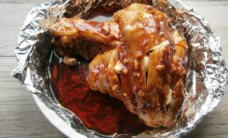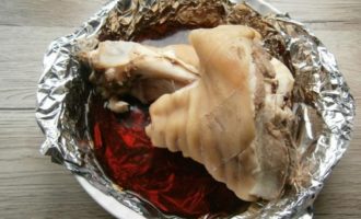 Vlees in folie bakt goed, wordt mals en aromatisch, smelt in je mond. Zorg ervoor dat je de varkenspoot in folie probeert te bakken en je zult geen spijt krijgen van deze beslissing. Dit gerecht duurt lang om te koken, maar het zal je niet teveel afleiden van je gebruikelijke huishoudelijke taken.
