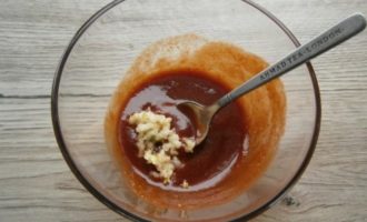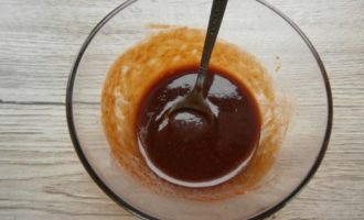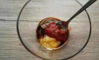 Combineer tomatenpuree, sojasaus, honing en mosterd in een aparte container. Roer de saus goed door met een vork.