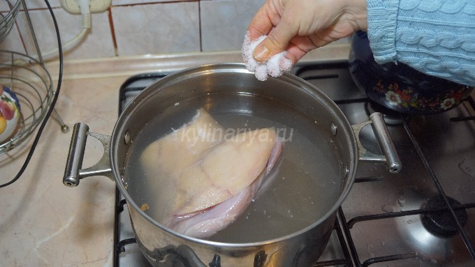 - Doe de schacht in een pan, zout en giet koud, schoon water zodat het de schacht aanzienlijk bedekt.