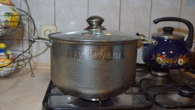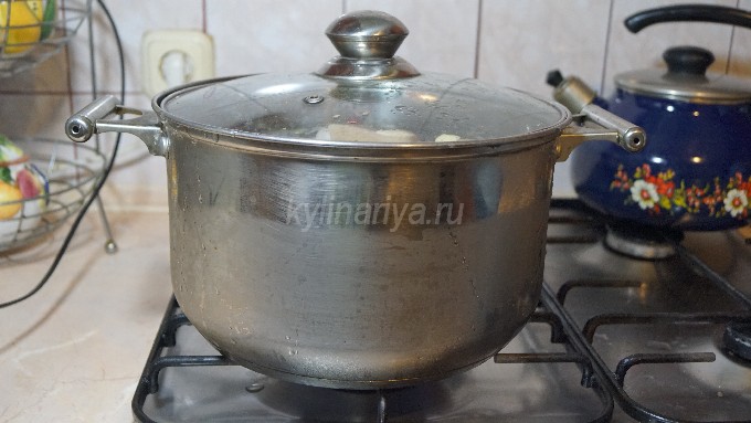 - Plaats de schacht in een grote pan en giet er koud, gezuiverd water in zodat de schacht aanzienlijk onder water staat.