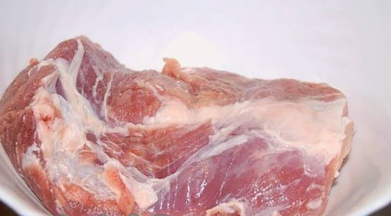 Het is het beste om varkensvlees te nemen met een klein laagje spek. Was het vlees en dep droog met keukenpapier.