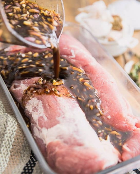- Bestrijk het varkensvlees aan alle kanten met de resulterende marinade.