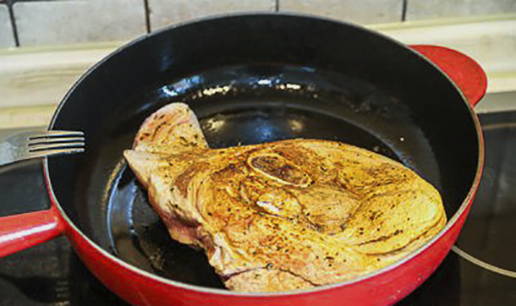 - Giet plantaardige olie in een voorverwarmde pan en bak het vlees aan beide kanten op hoog vuur.