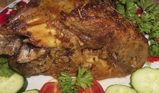 Mals en zacht varkensvlees in de oven, gemarineerd in mosterdmarinade