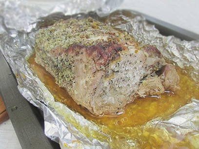 - Heel stuk varkensvlees gebakken in folie in de oven