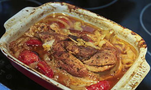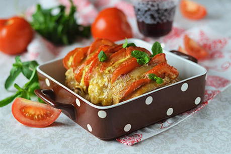 - Hoe lekker is het om een stukje varkensvlees met tomaten en kaas te bakken?