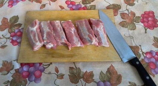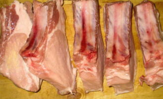 - Snijd de ribben in gelijke stukken.