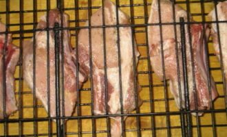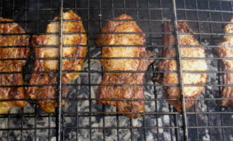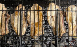 - Leg het vlees op het rooster en bak het een half uur, draai het af en toe om.