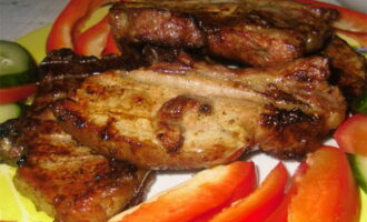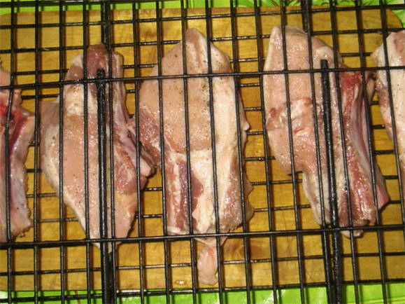 - We controleren de bereidheid van het vlees door sap: als het transparant is, zijn de ribben klaar.