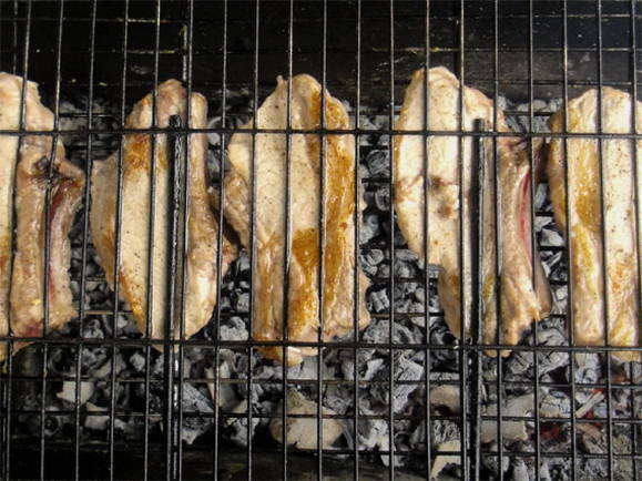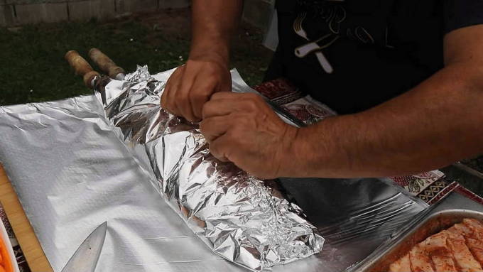 - Bak het vlees vervolgens gaar op kalme kolen, keer elke 3 minuten. Het zal ongeveer een half uur duren.