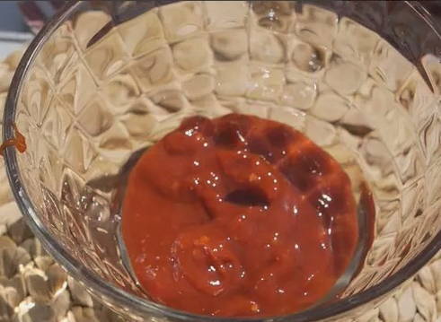 - Laten we beginnen met de barbecuesaus. Meng eerst de ketchup met azijn.