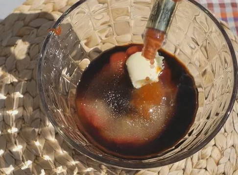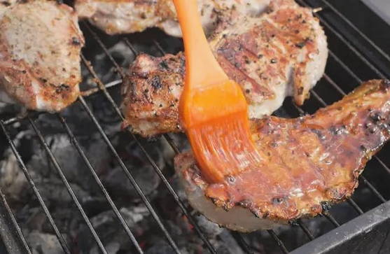 - Draai het aan één kant gebakken vlees om en vet in met barbecuesaus. Als de tweede kant gebakken is, vet deze dan ook in.