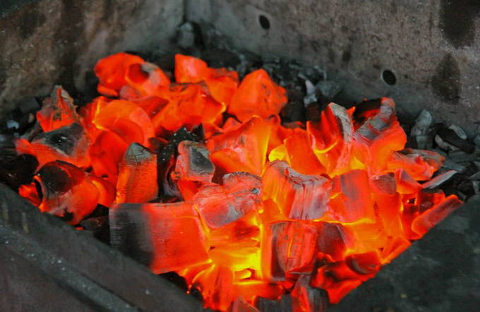 - Vervolgens beginnen we de kolen voor te bereiden om te frituren.
