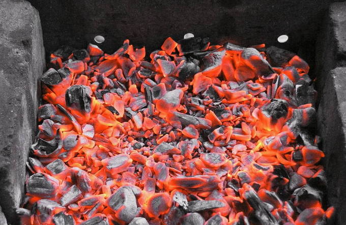 - Ondertussen maken we de kolen klaar.
