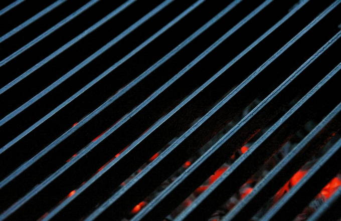 - Blaas de houtskool krachtig af voordat u het vlees neerlegt en leg de ribben onmiddellijk op het rooster.