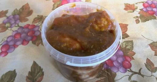 - Bereiding van de saus. Pel en snipper de sjalotten en een ui in grote stukken. We hakken ook de chilipeper en schillen deze. We mixen alle ingrediënten met een blender, terwijl we tomatensaus, knoflook, olie, kruiden en mosterd toevoegen. Bedek de ribben voorzichtig met de resulterende saus en laat ongeveer 4 uur marineren.