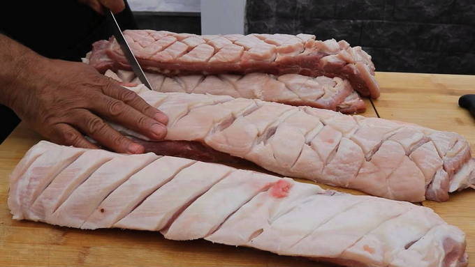 Bereid het vlees voor en snijd het langs de ribben.