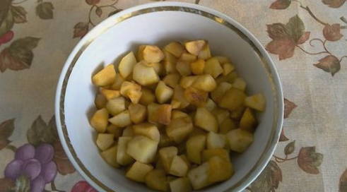 - Laten we beginnen met het maken van de saus. Was hiervoor de appels en schil ze van zaden en schillen en snijd ze vervolgens in grote stukken.