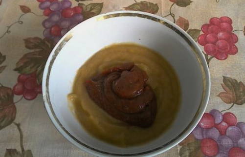 - Voeg ketchup toe aan de puree.