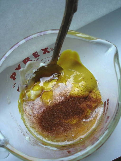 - Giet peper en kaneel in het mengsel.
