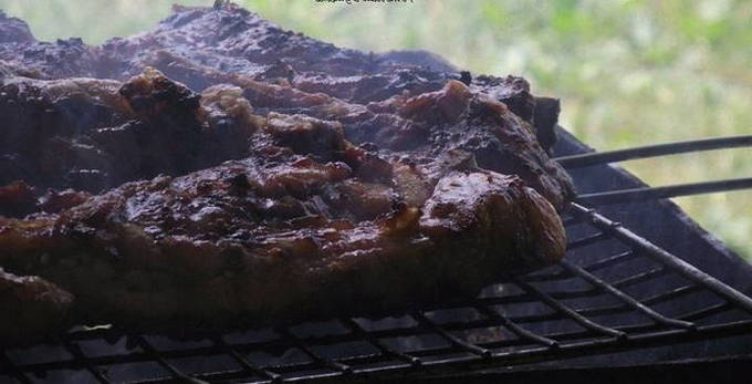 - We wikkelen de ribben in folie en sturen ze naar de grill. Bak de ribben een uur aan elke kant, verwijder dan de folie en laat de ribben nog een paar minuten op de grill liggen om een korst te vormen.