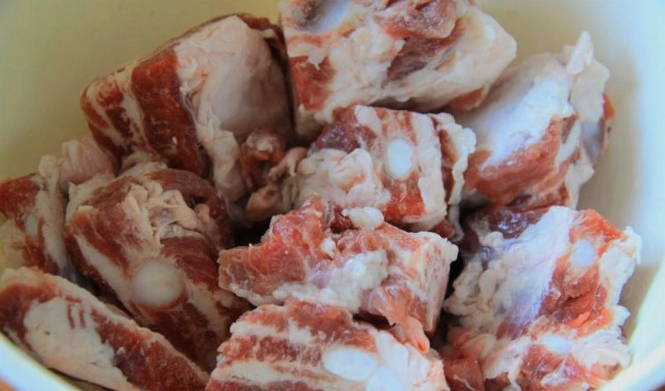 - Snijd de ribben in kleine stukjes.