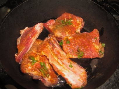 - Bak de ingelegde spareribs in een pan goudbruin.