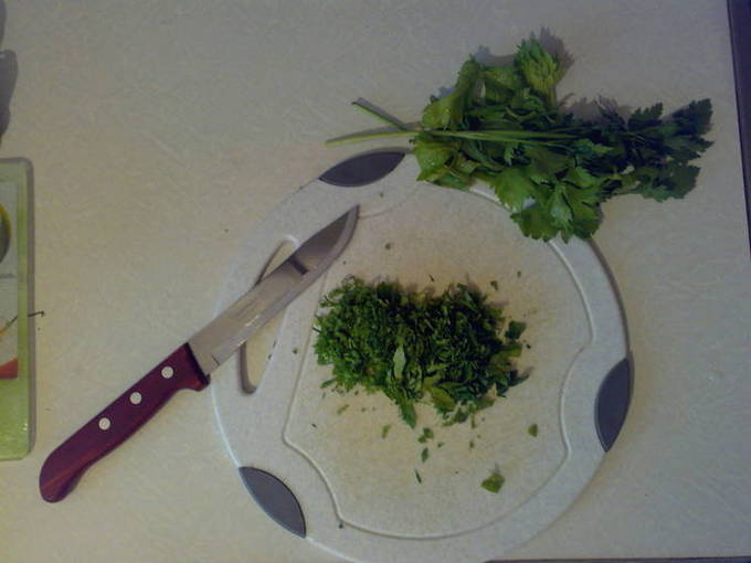 - Snijd selderij en peterselie.