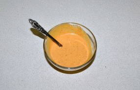- Combineer mosterd, mayonaise, ketchup, suiker, peper en zout, meng grondig tot een gladde massa.