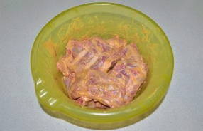 - Meng, wrijf elk stuk in met het mengsel en laat marineren.