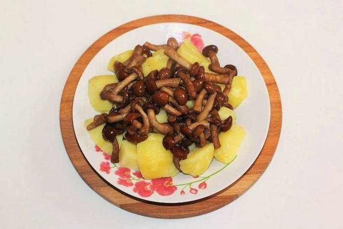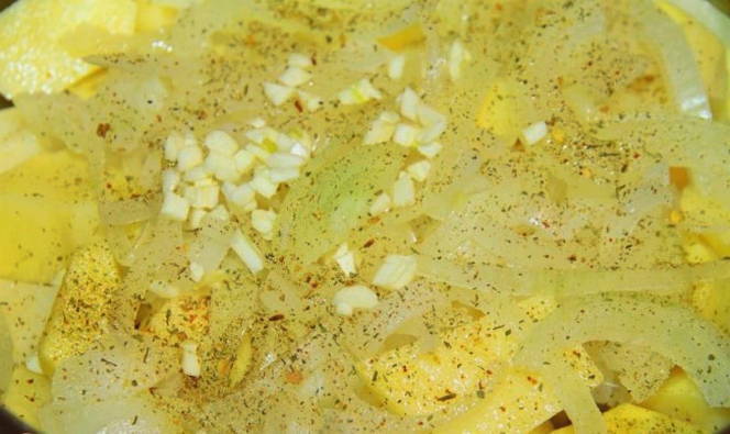 - We vallen in slaap van paddenstoelen tot aardappelen. Vul met plantaardige olie, voeg knoflook toe, meng alle ingrediënten.