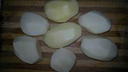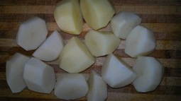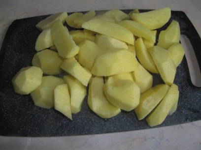 - Snijd de geschilde aardappelen in grote stukken.
