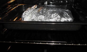 - We binden de mouw, doorboren hem. We bakken ongeveer een uur op 180 graden.