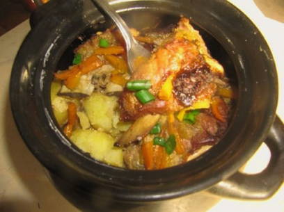 - Ongelooflijk heerlijke varkensribbetjes met aardappelen in een pot