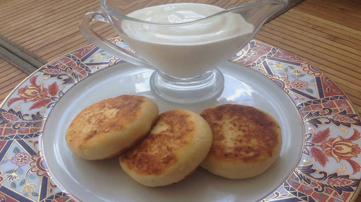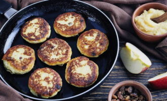- Syrniki worden gemaakt van het deeg, doe ze in een ingevette koekenpan en bak ze op laag vuur tot ze aan beide kanten bruin zijn. Syrniki worden warm geserveerd met eventuele toevoegingen, naar eigen smaak.